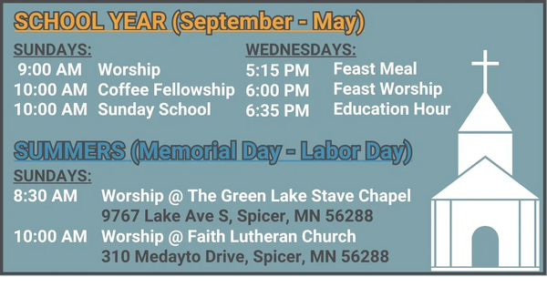 More information about our worship schedule can be found under the Worship tab. Services are in person and posted to the Faith Lutheran YouTube Channel and available as recordings on this website the Monday following worship.